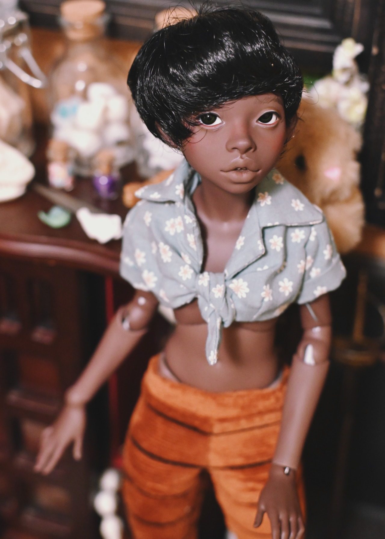 I’m finally satisfied with how he turned out. The only thing I miiiight adjust is the calves because the ankles are a bit unsteady, and to finish the hands and feet of course (even though I intend to continue using the Dollshe and Resinsoul hands that fit his shoes). I got him sanded pretty quickly, before I even took and other photos, and he looks and feels just like a casted doll for the most part.