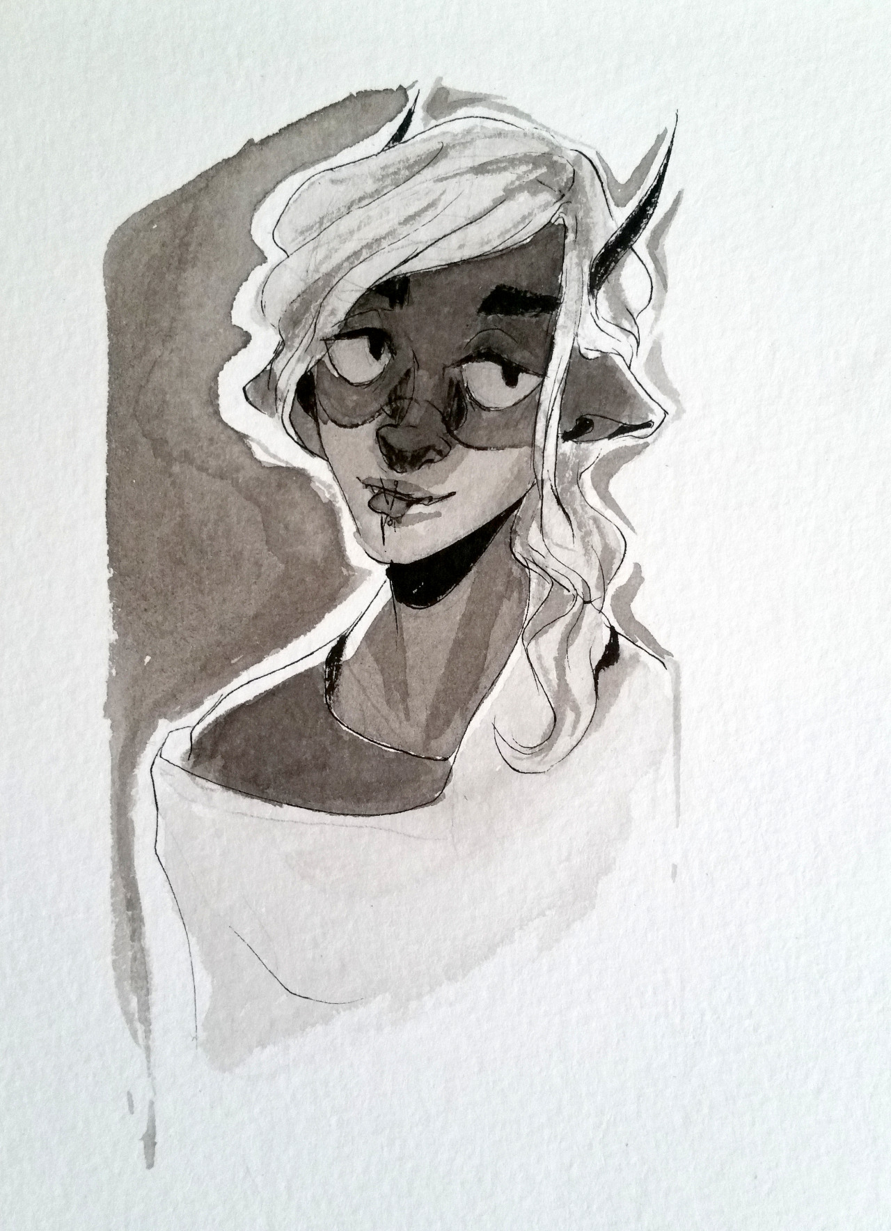 ( Trying out an ink brush, feat. smudge because the ink dried way slower than I was used to. )