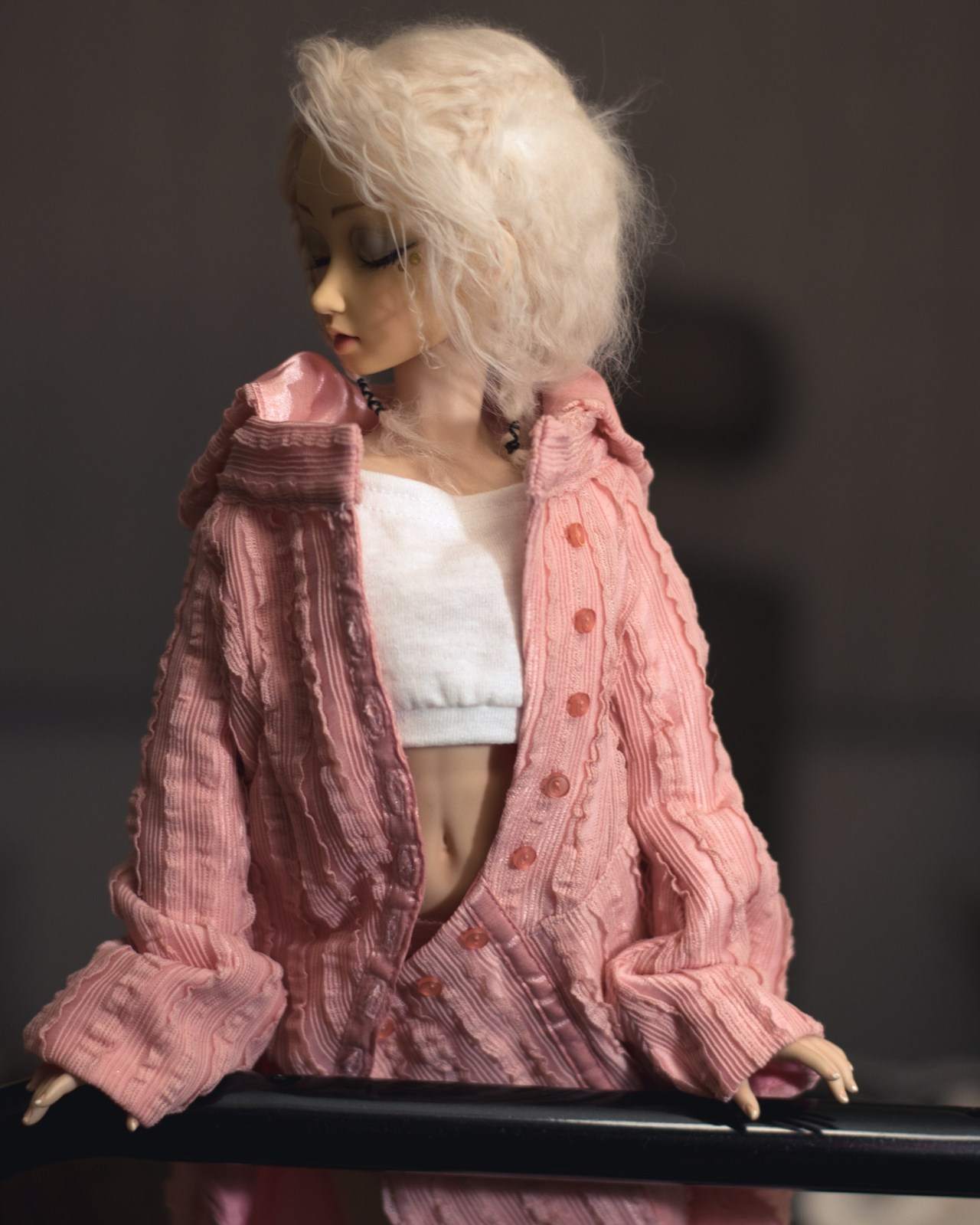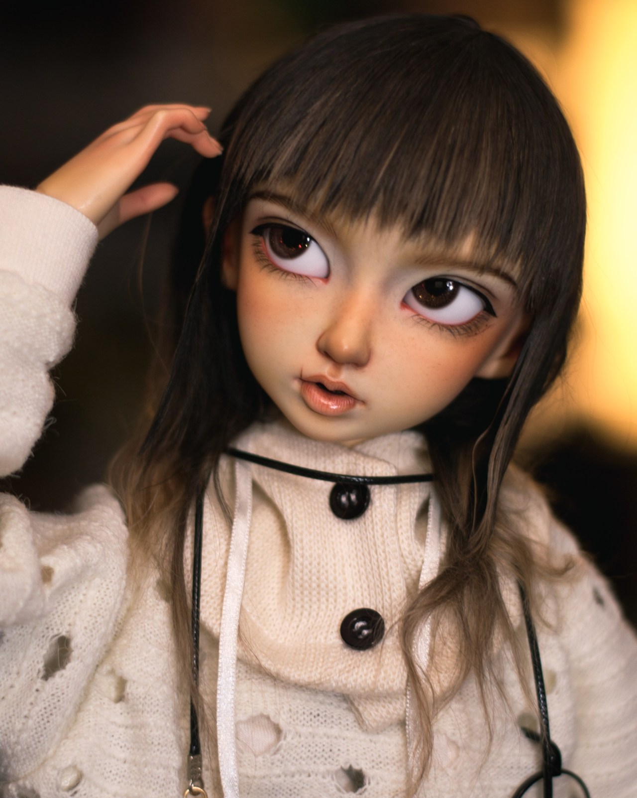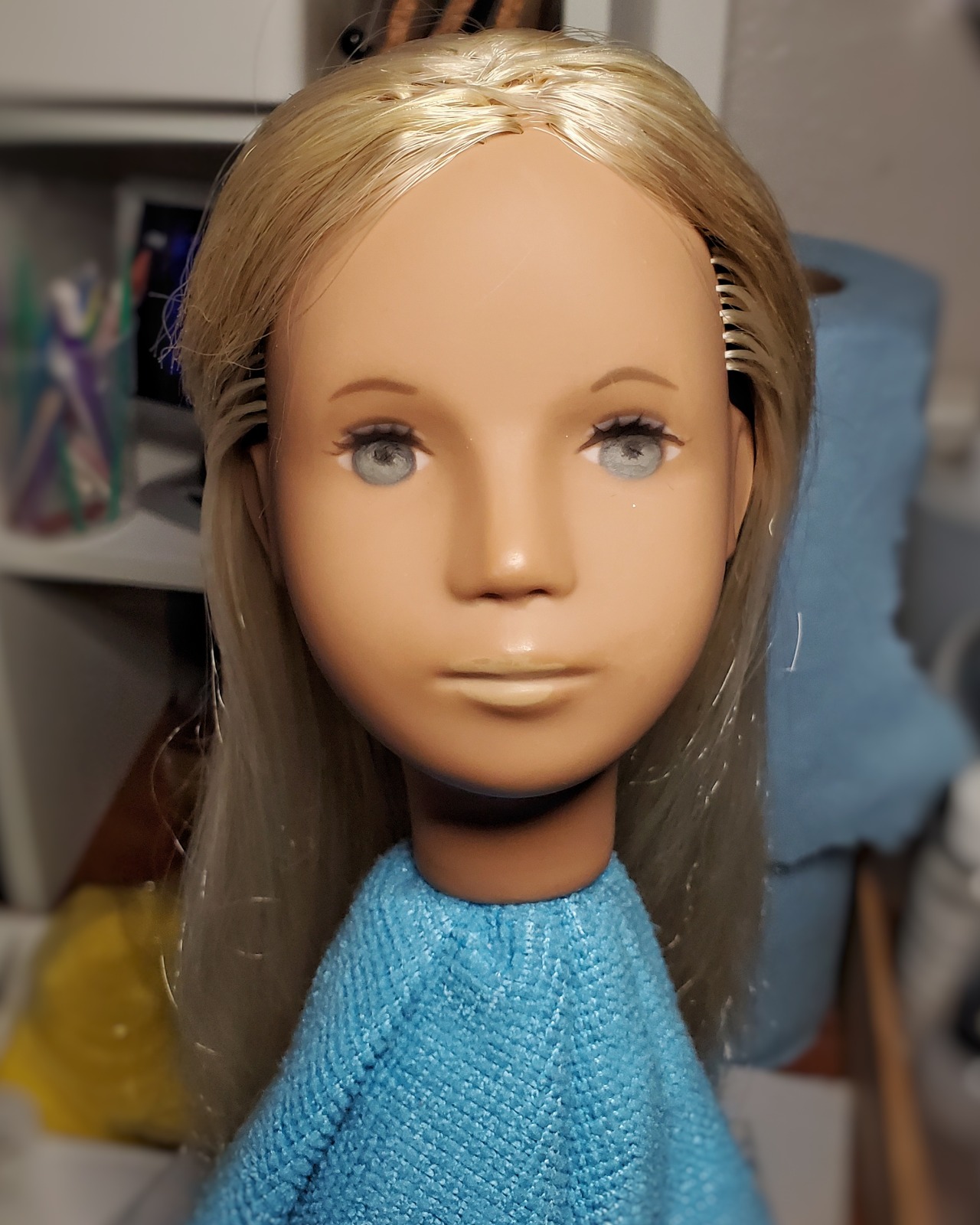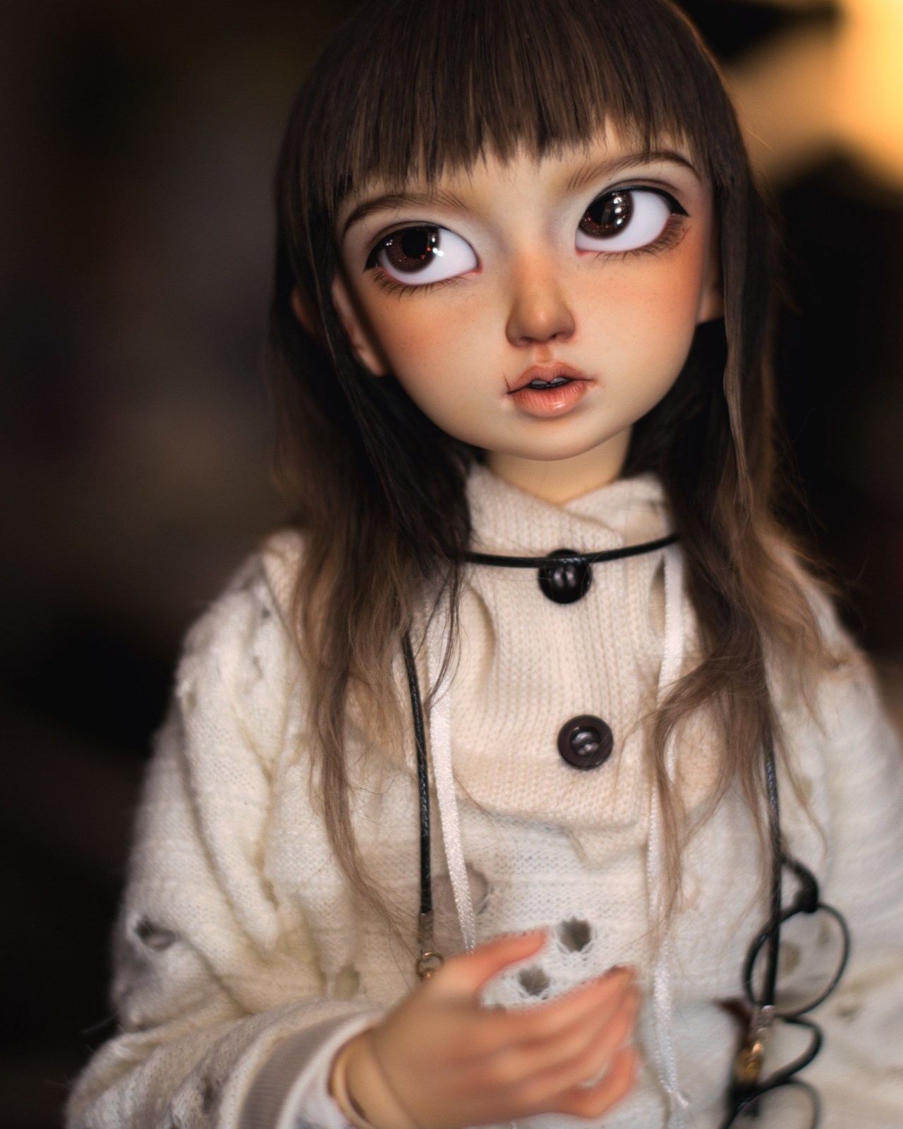 Just some shots of Sasha all cleaned up and restrung! I gave her some brains even though I’m not very good at them. She’s just wearing an SD sweater until her clothes are washed.