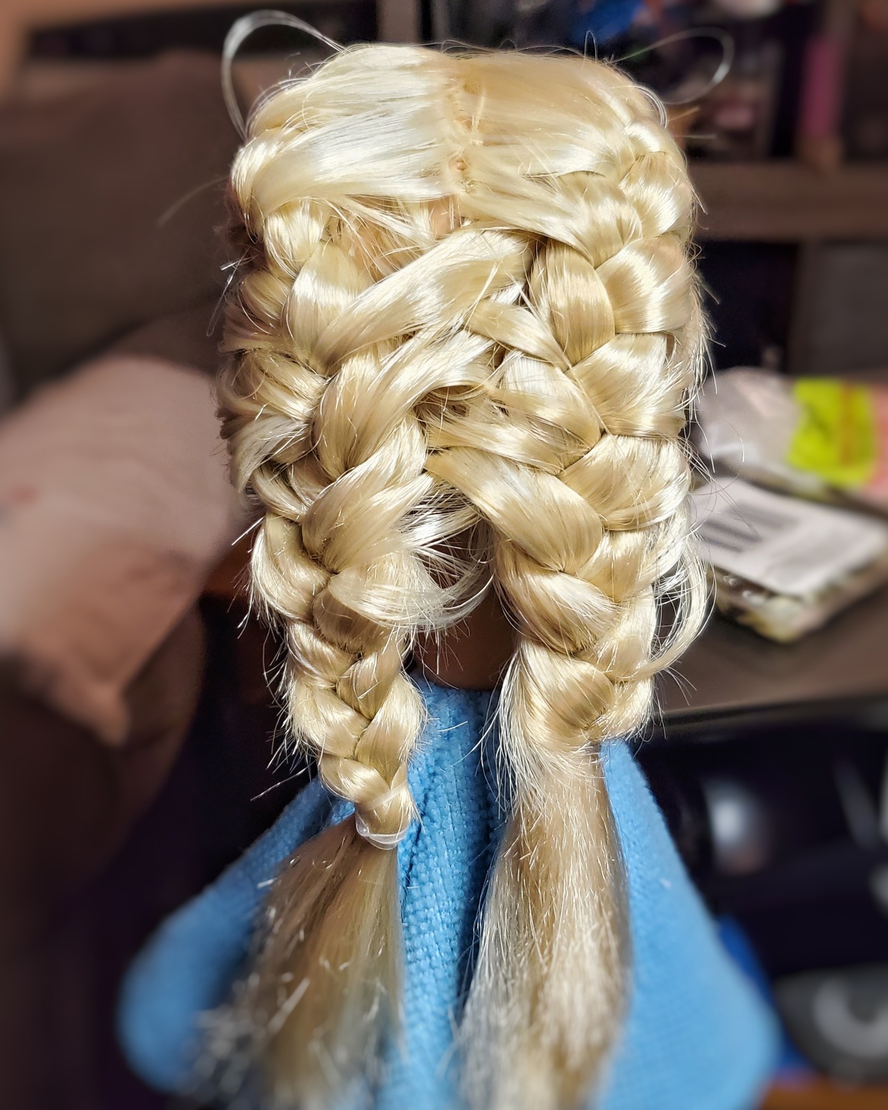 After rooting the bangs in I treated the hair using the sage advice of @dollsonmain , with conditioner and a straightening iron on low. I was really shocked by how soft and silky it was after this. Finally I re-thatched the part and gave her a boil wash. I decided to part her bangs instead of cutting them, which she really wasn’t rooted for, so it doesn’t look the neatest but I still prefer it to the very thick bangs that she was originally rooted with.
