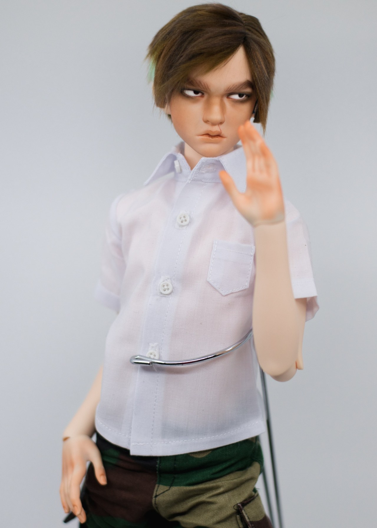 I sanded down a LOT of resin on the mid-torso to rough in the wasp waist and lessen the muscle definition. Then I sliced about a centimeter off the top and sanded it down from there, shortening the torso significantly. I expected to make the torso look short, but it was so elongated that it looks more normal than where I started, haha. It’s also now a rounded joint instead of one with a ridge like the original, so it can be moved without pulling. I significantly reduced the bottom edge of the upper torso. I didn’t change the shape of the joint, I just ground down the edge and the chest. I flattened out the chest as well, which sounds like a weird thing to do on a male body, but the shape actually looked more like modest breasts than pecs, especially with my waist mod, and Myr doesn’t have breasts, so I flattened it out to a more ambiguous shape.