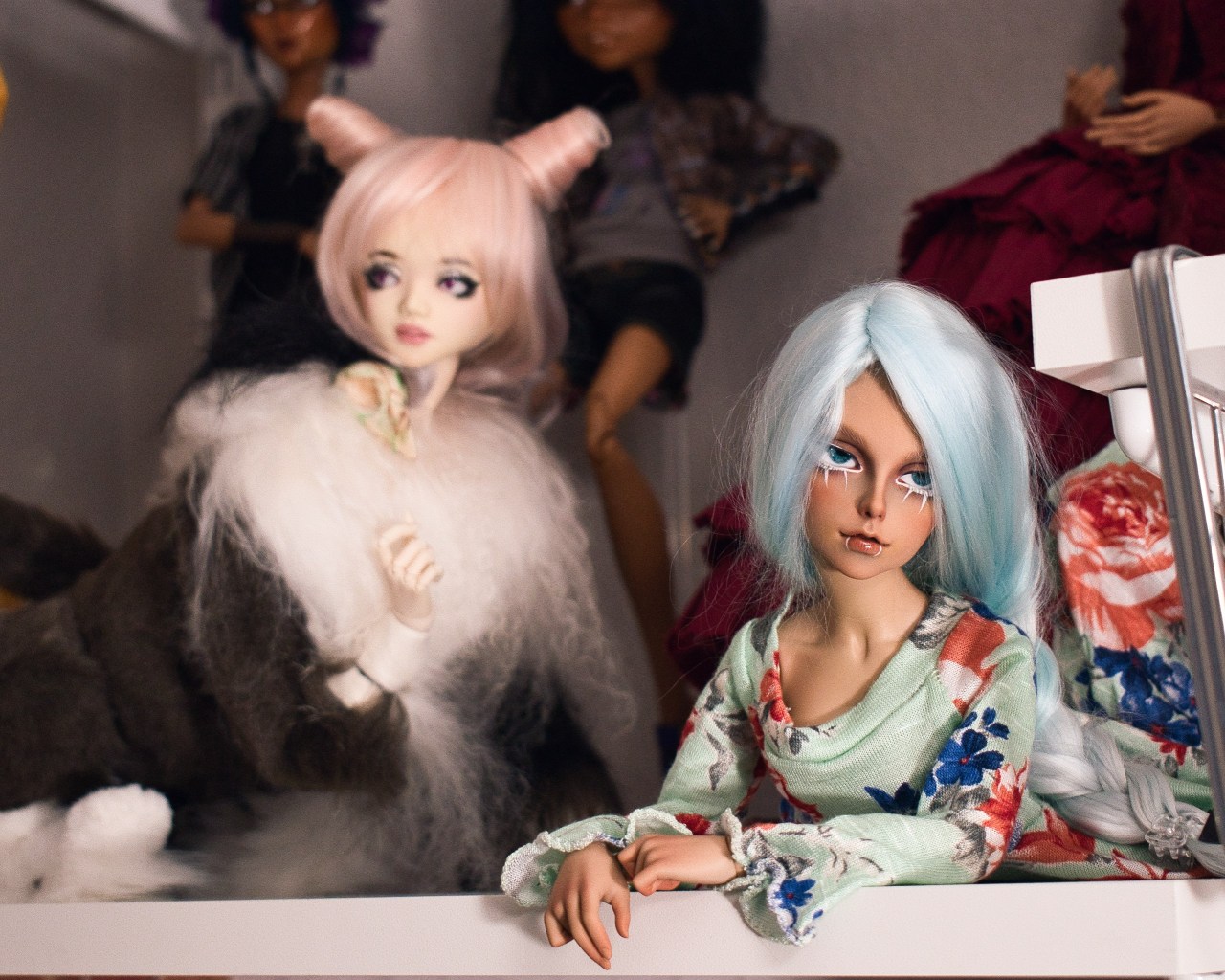 I’d almost forgotten this repaint to be honest, her head was too light for any body I had, including her original body, so I had experimetally stuck her on a tiny Breyer body, which was kind of cut but just not expressive or self-supporting in any way. And it still didn’t match. EAH has enough dolls in the super-white range that this one (Poppy?) is a great match for her though. I like her as an uncomfortable Cupid.