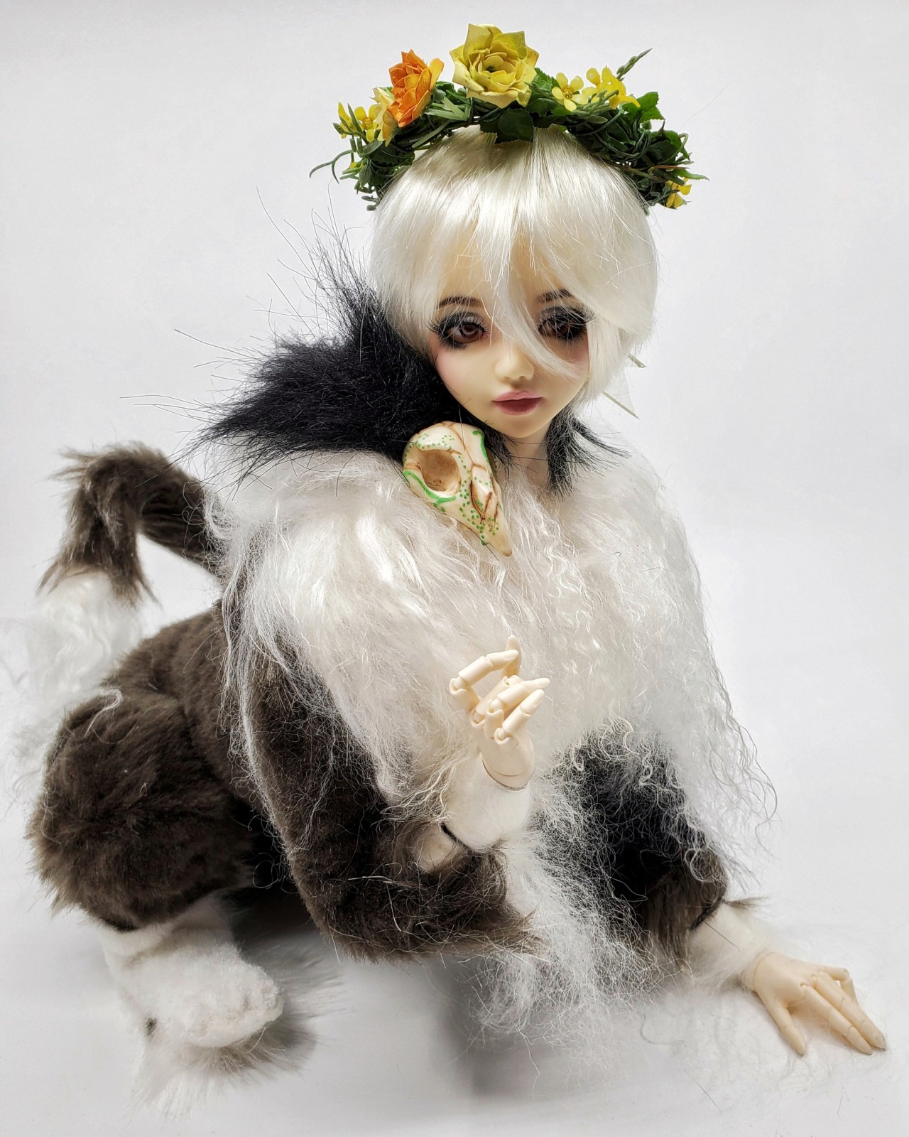 I got an Unoa Lusis head at a doll show and decided that I wanted her to be a Sphinx! Imade her body in the posable art doll style and I learned a ton about how to do it better in the future, haha. She has a Buff headback, the sanded Resinsoul Tang upper torso I had left over from Daniel, and a pair of ResinSoul jointed hands. I 3D printed the wrist parts. She borrowed Soony’s wig for the convention I brought her to (November 2019, RIP conventions), then I got her a better one than the gray wig in the top photo there but I haven’t gotten a photo of her in it yet.