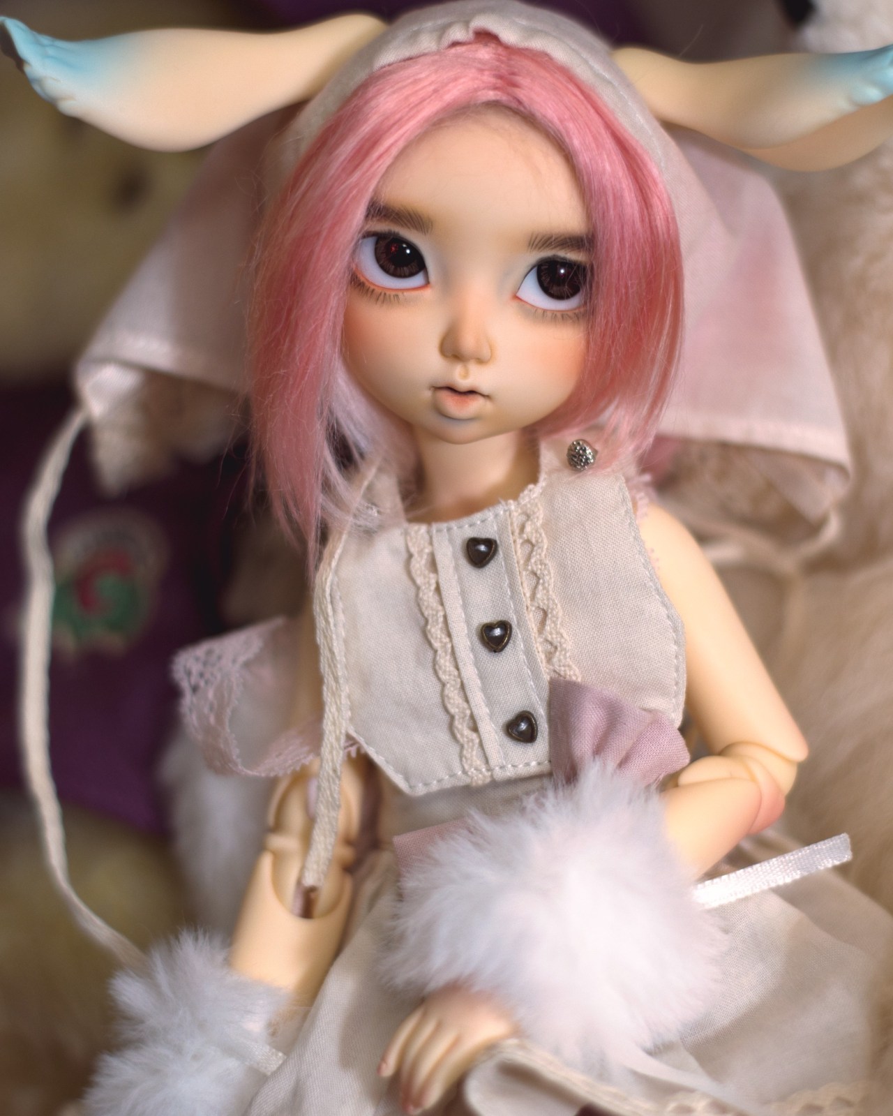 I finally got a chance to seal the faceup layer on LTF Soony so that she could be put back together! In between I decided that I wanted her to be a little taller so I picked up this Dollzone Mini Jing body and fullset, which is SUPER cute and the yellow resin is actually a great match. I just had to flip one of the magnets in the ears to work with the LTF headback’s magnets. I did somehow mess up her upper liner in the process of sealing the faceup layer? Just the upper liner, very odd. I’ll have to paint over it.