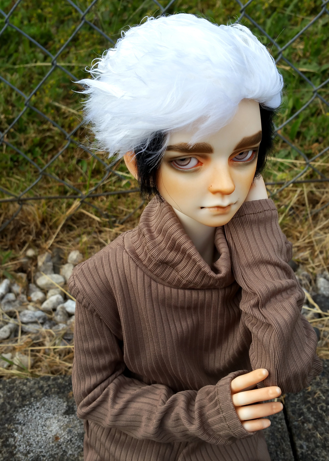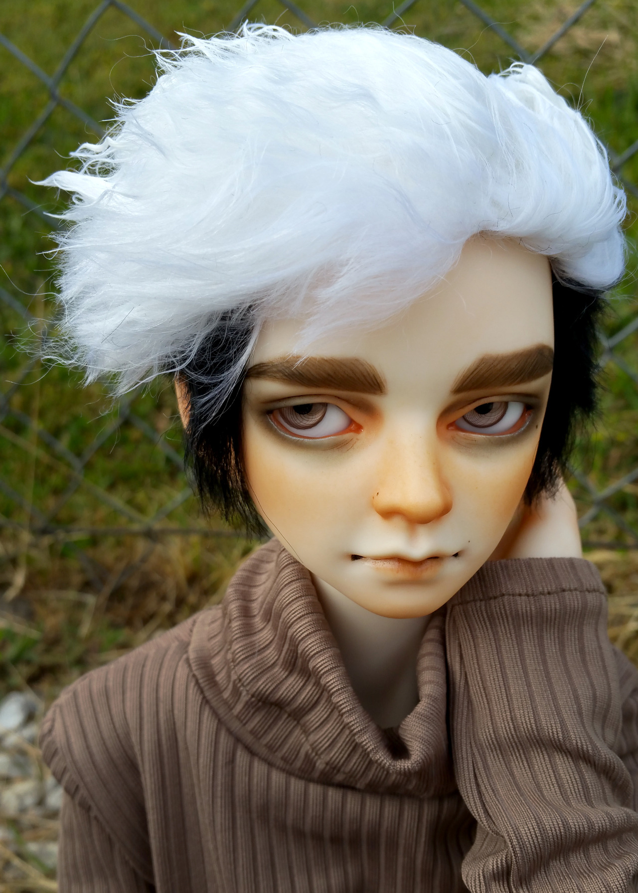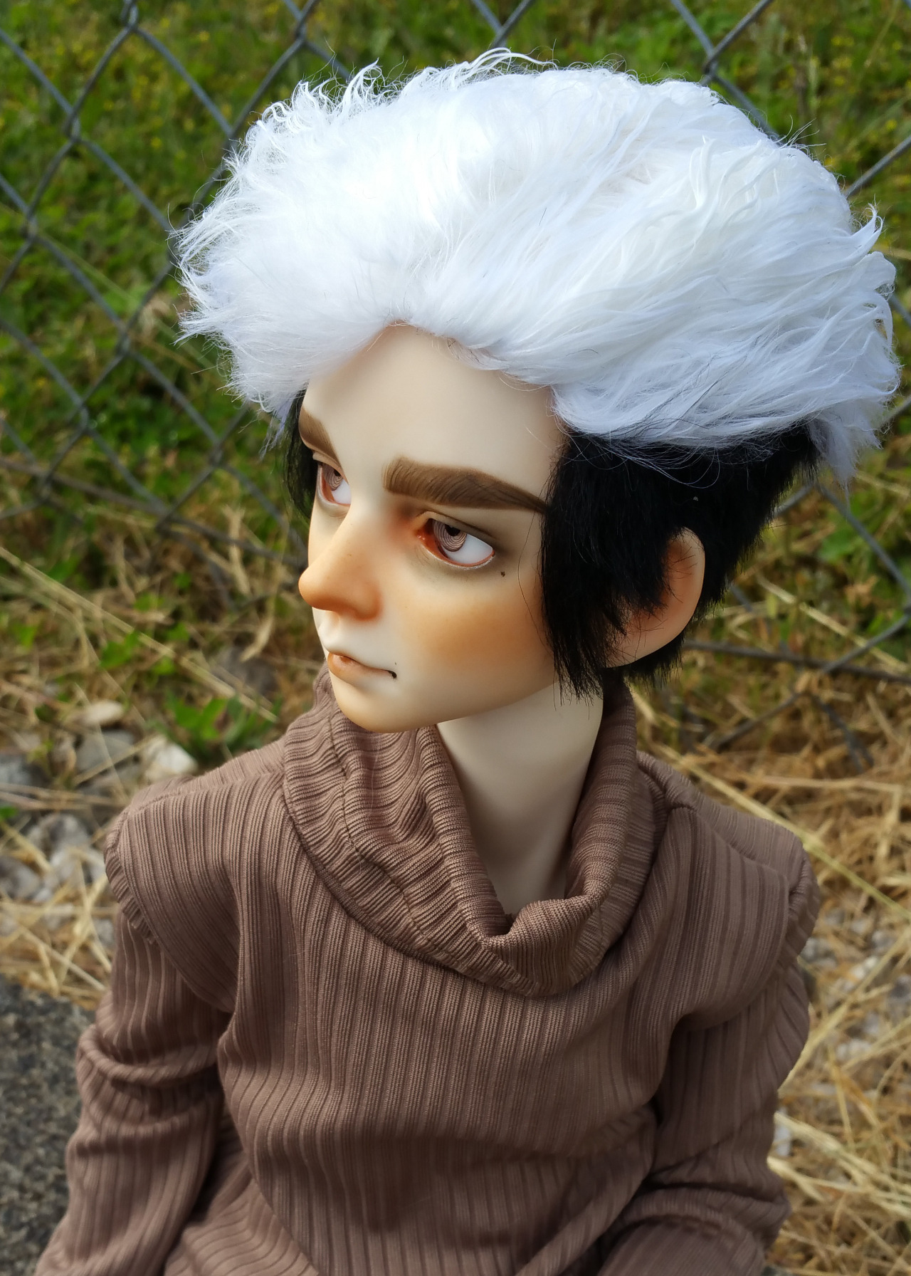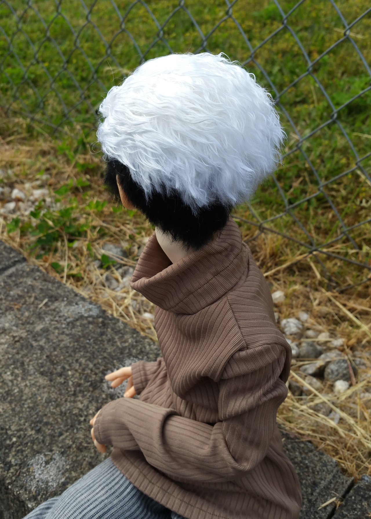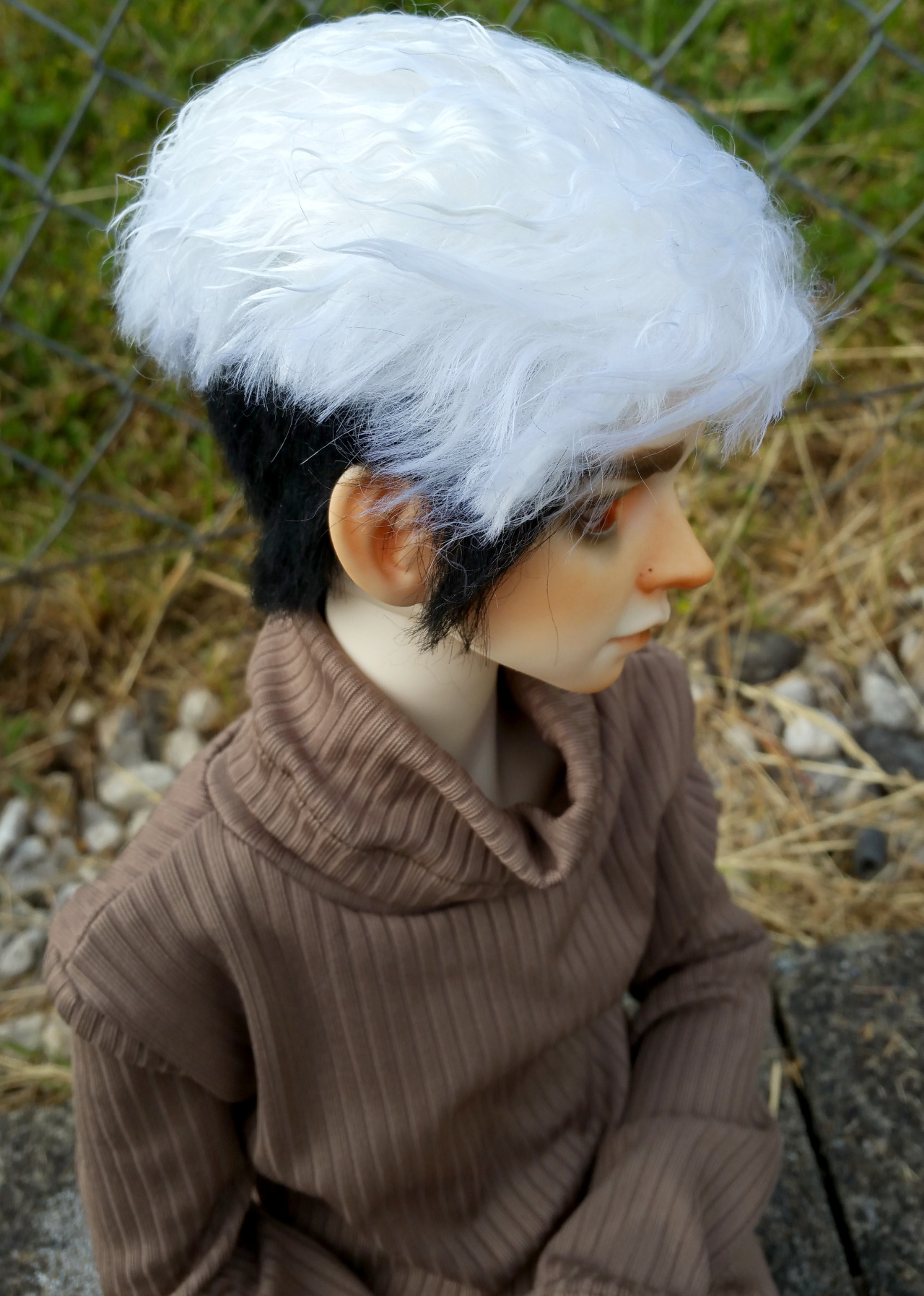 I liked making the tibetan lamb wig for Clawdeen so much that I splurged on a white pelt so I can make wigs with a bit more variety. (It’s a lot nicer-feeling than the stuff salvaged from the rummage sale skirt trim, unsurprisingly. I wonder if I can condition that. ) I decided to make a wig for my neglected old DIM boy. He’s been a character I don’t care about for about 8 years, so at this point I’m exploring doing other stuff with him. I like the doll more than I ever liked the character. This is a new-ish faceup too, although it needs to be redone because I didn’t seal it well and a bit of blush came off the nose. The brows are also too solid and brown, the lip line is awful, bleh bleh bleh.