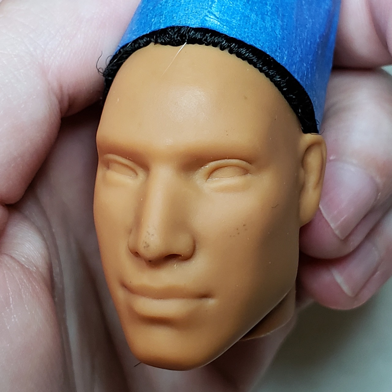 I found a Hunter Huntsman and I really wanted to put this head on his body using @dolldirt‘s bread tag trick, but I carved the hole a little too big. OTL I want to try using some hot glue in the neck rim to get it to work, but for now, he’s on a Fashionista Ken body. (No, the clothes really don’t fit.)