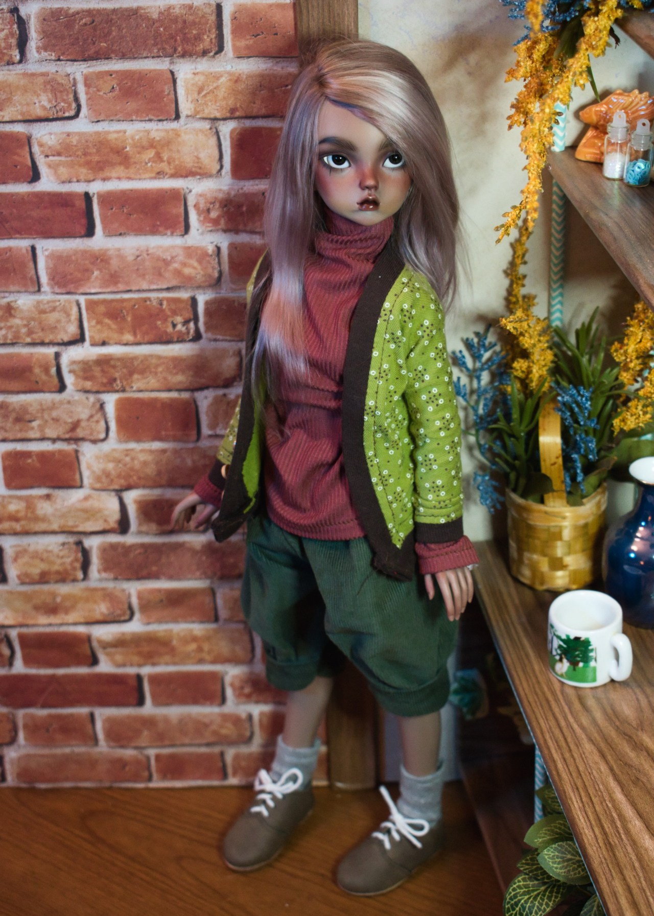 Update on Nabiya! I finally did a last layer on her faceup. I think I change her wig more often than any of my other dolls… I don’t know if I can’t find one that suits her, or if it just suits her to change it up a lot. She really needs new eyes, these are blatantly too small for her eye wells, but nothing else has irises of the same size and darkness and I find those parts to be perfect.
