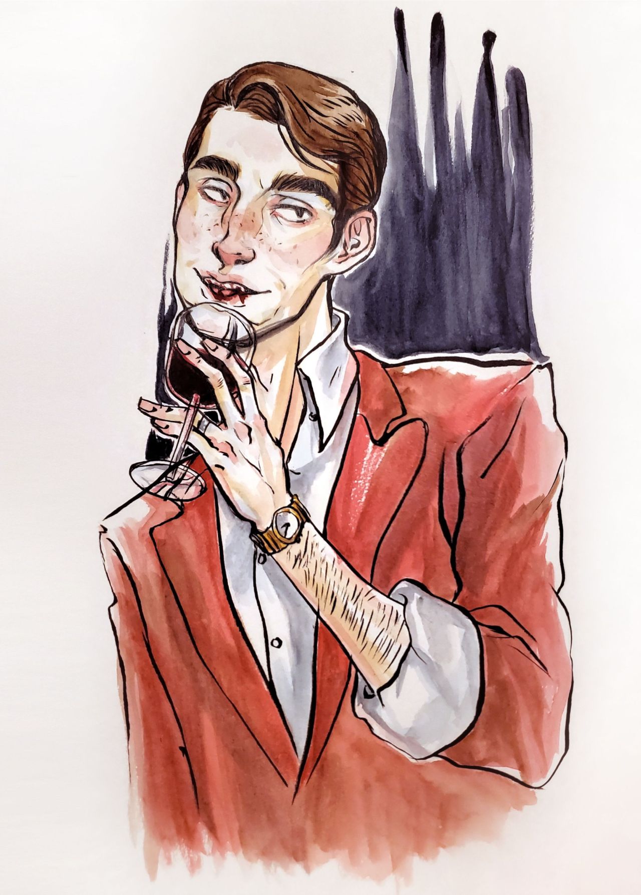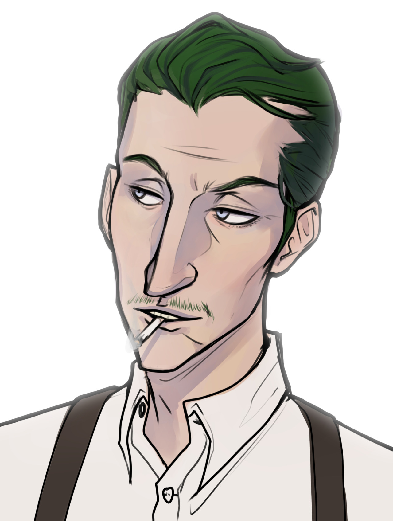 Drew Daniel with a little moustache and accidentally turned him into a queer-coded Disney villain