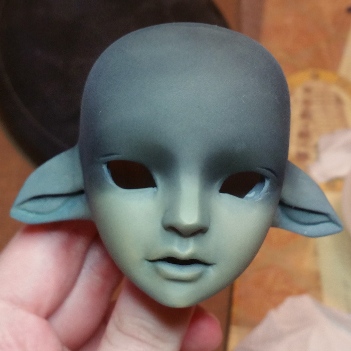 I also did a mouth opening with custom tooth piece, downturned elf ears, and filled in the sides of the eyes, then did some general face sanding mods.