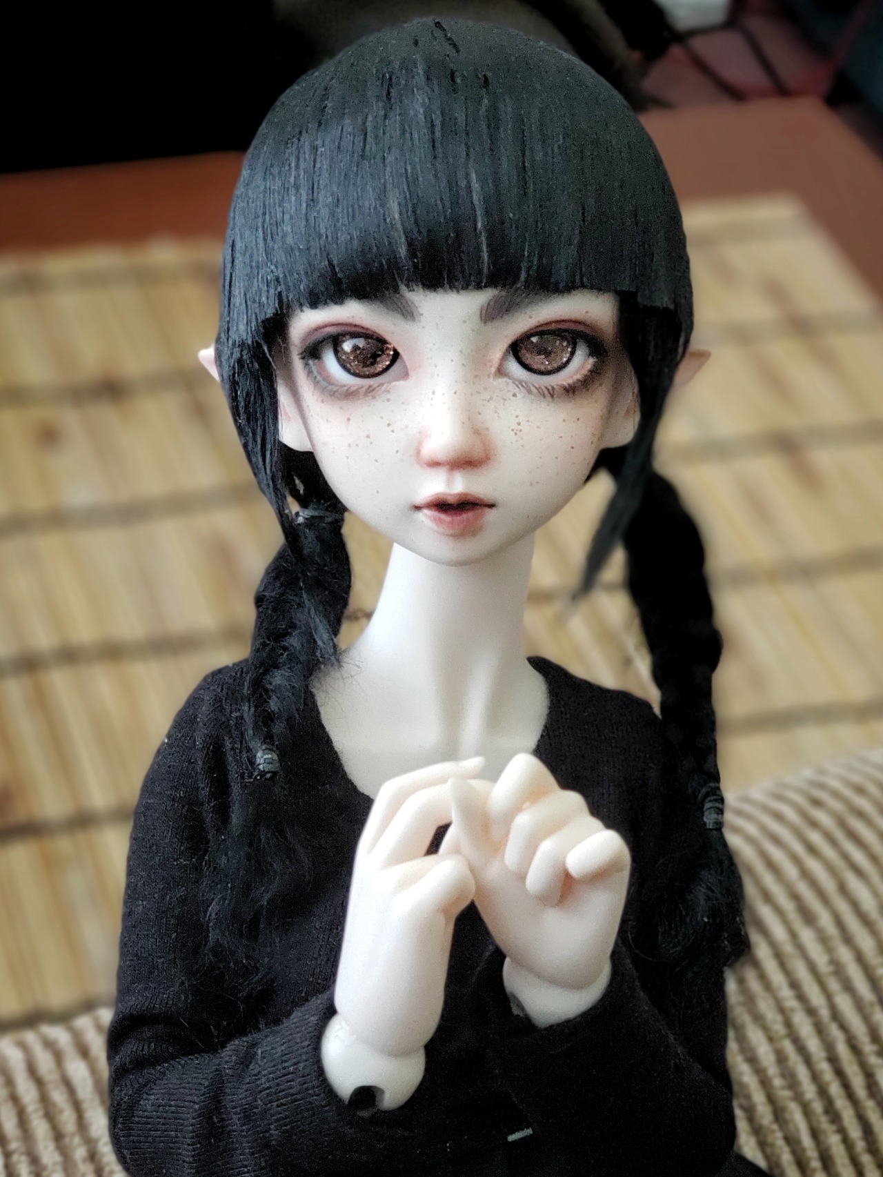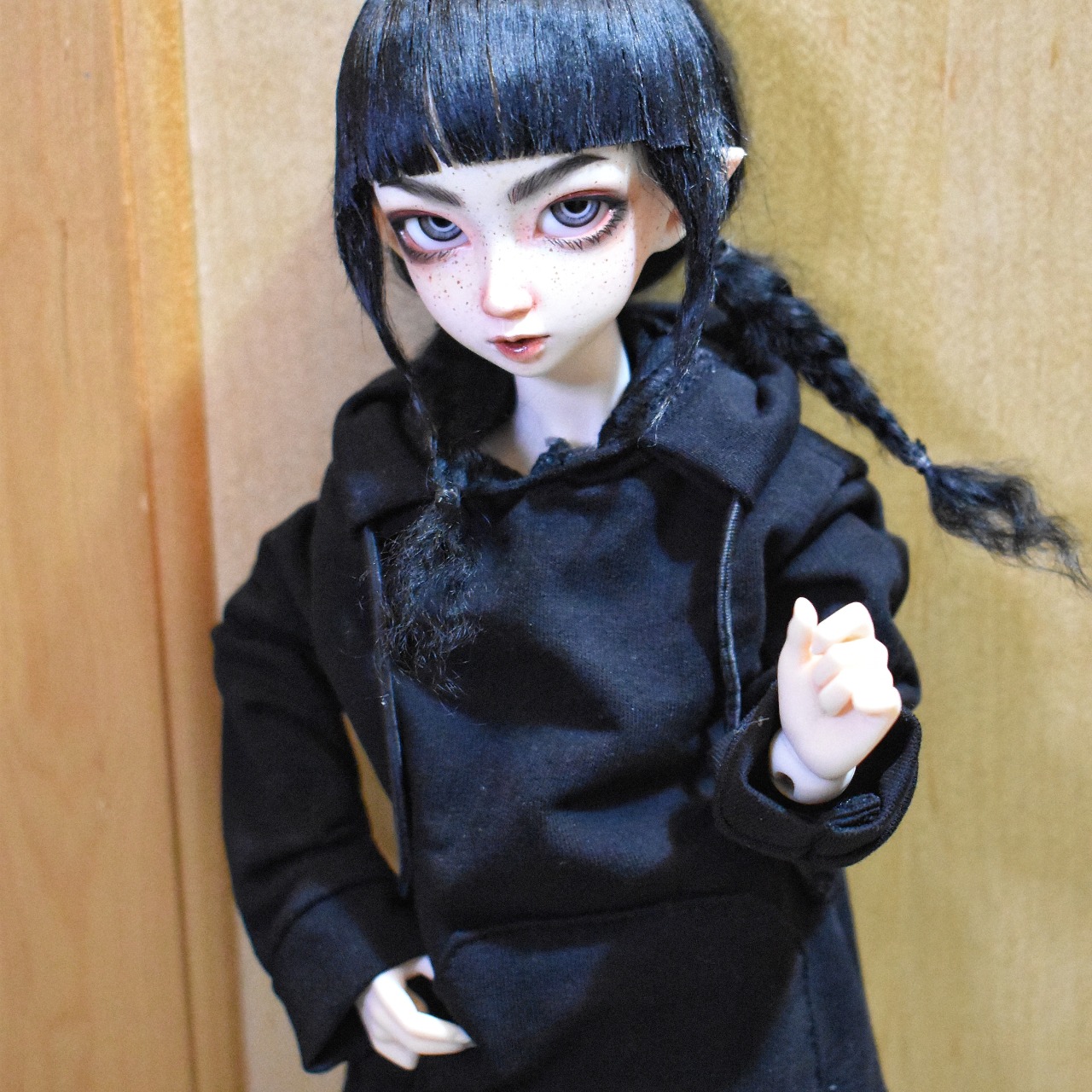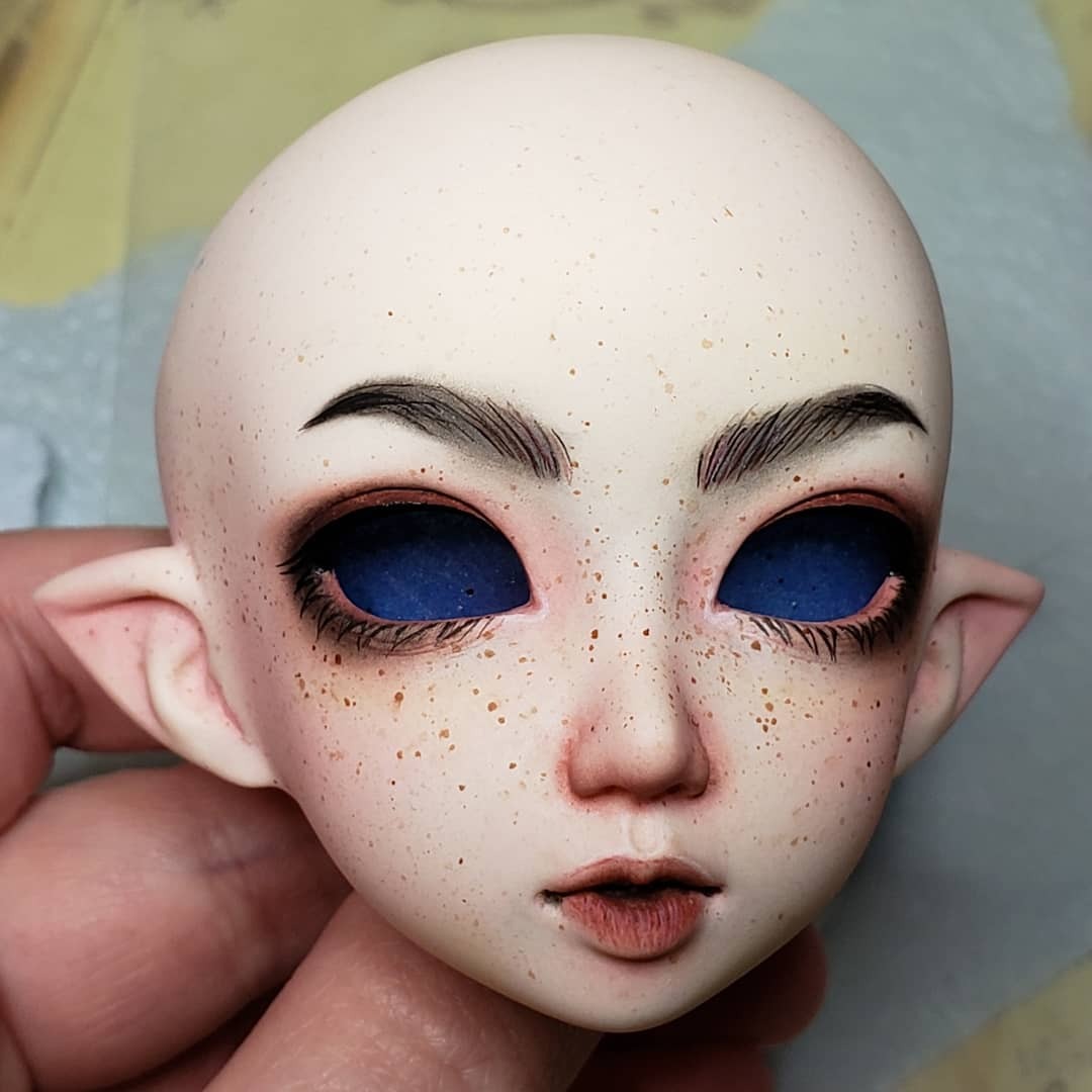 In 2018 I managed to acquire a version of a dream doll of mine, Minifee Juri 2014/Elf Soony! Soony was the first BJD sculpt that I fell in love with so I was thrilled to have a small version of her. She started with a Resinsoul Rong body, which I did pretty much all the same mods that I described on Myr on with the addition of modding the hards into wrist pieces for the Minifee hands. I airbrushed her to match the lighter Resinsoul resin, but did a bad job of it, so the pain was pooled around her nose. I still like her faceup, but I’ve since gotten her a Minifee body, so I will need to do one that isn’t airbrushed lighter.