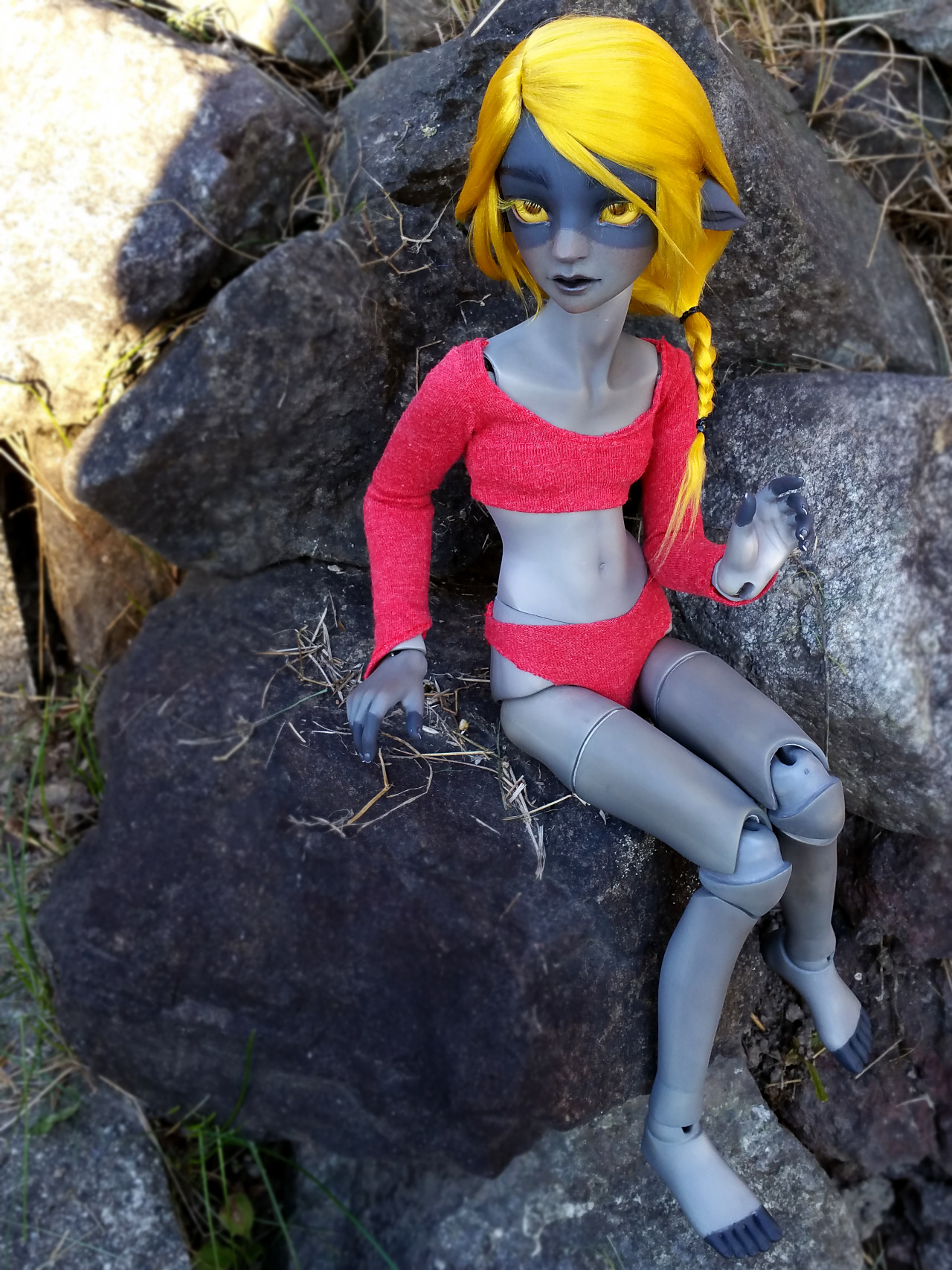 Better shot of Myr doll outside! I still need yellow-blonde hair. Bleh.