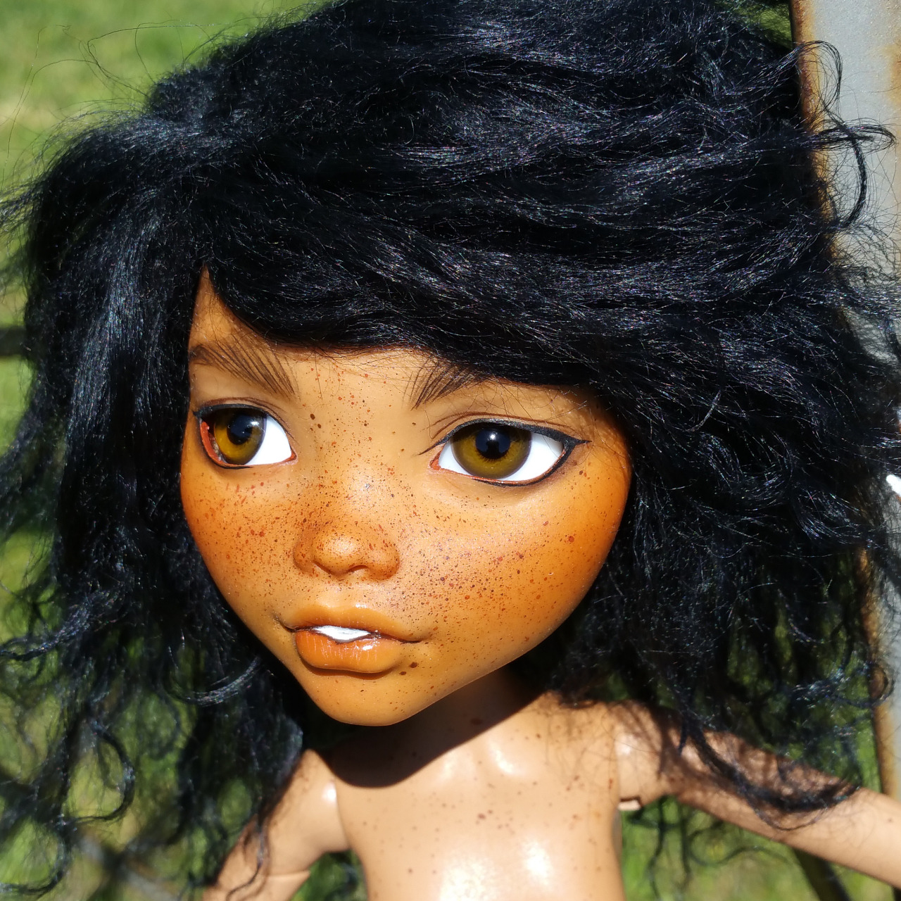 Liv-eyed Cleo I did ages ago and keep forgetting to post. She’s a bit sad; her eyes are hella wonky because I didn’t have enough kneaded eraser to make them stick, so I just glued them in with white glue. I don’t recommend it. All her blushing also disappeared because I didn’t seal her. And her repaint is lazy.