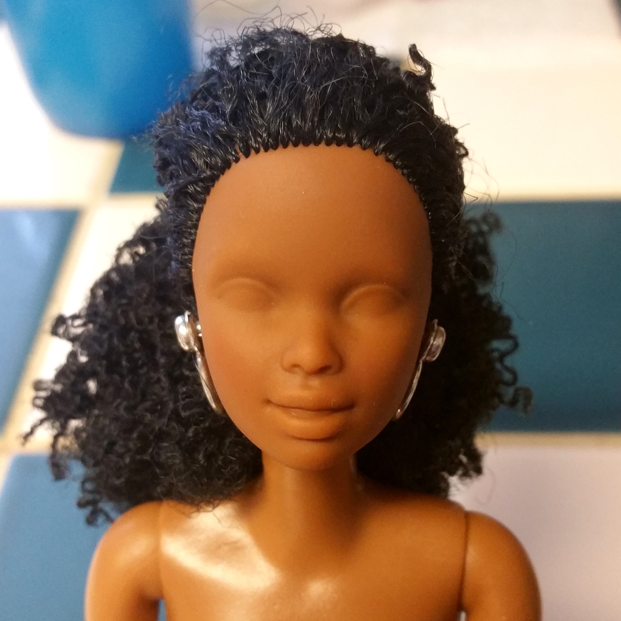 I like this face mold and her huge hair, though. I stuck her on a handless EAH body because apparently the ball at the top of that neck is close enough to the ball-joint neck she originally had to work. The neck looks hilariously thin, but it kind of did on her original body too.
