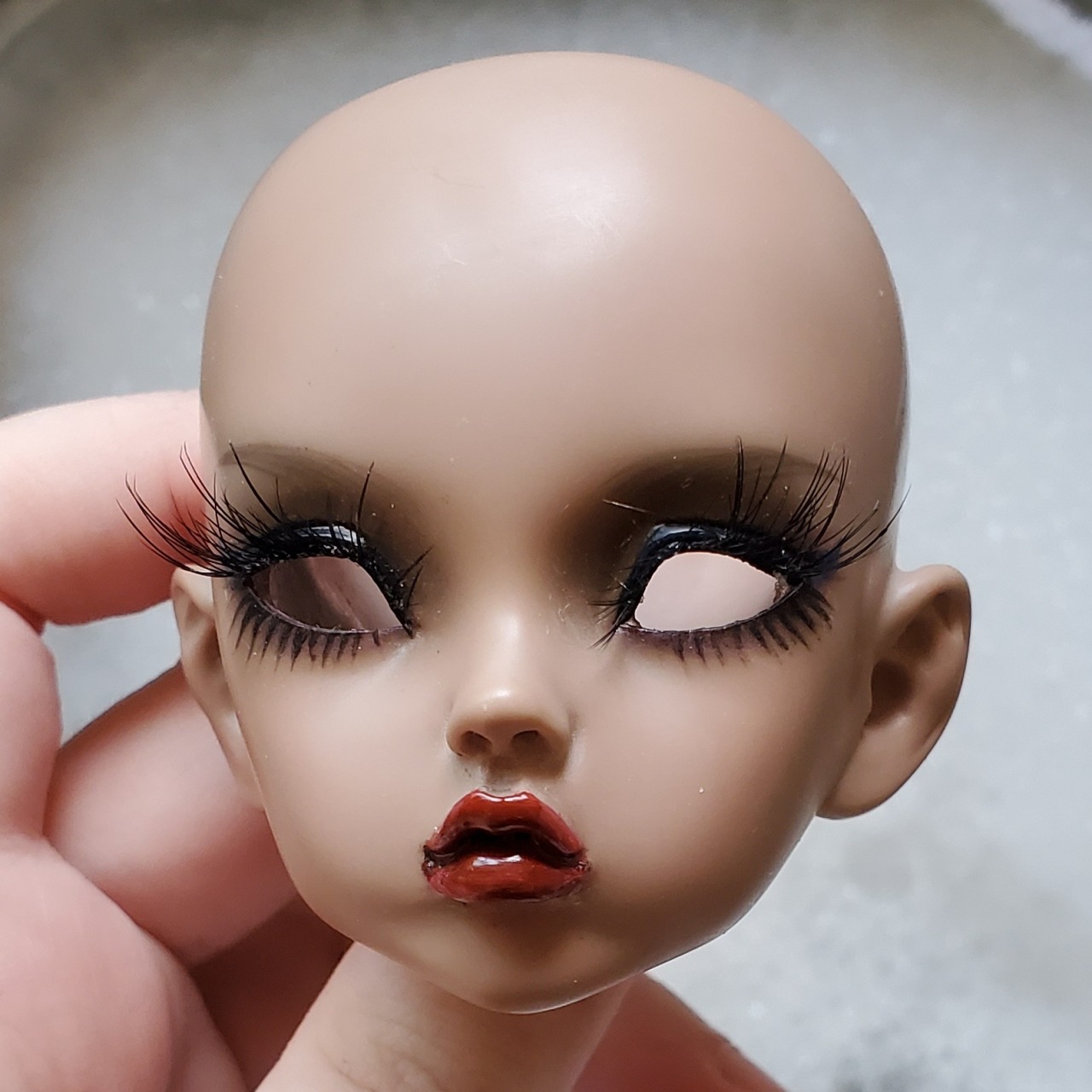 In 2018 I managed to acquire a version of a dream doll of mine, Minifee Juri 2014/Elf Soony! Soony was the first BJD sculpt that I fell in love with so I was thrilled to have a small version of her. She started with a Resinsoul Rong body, which I did pretty much all the same mods that I described on Myr on with the addition of modding the hards into wrist pieces for the Minifee hands. I airbrushed her to match the lighter Resinsoul resin, but did a bad job of it, so the pain was pooled around her nose. I still like her faceup, but I’ve since gotten her a Minifee body, so I will need to do one that isn’t airbrushed lighter.