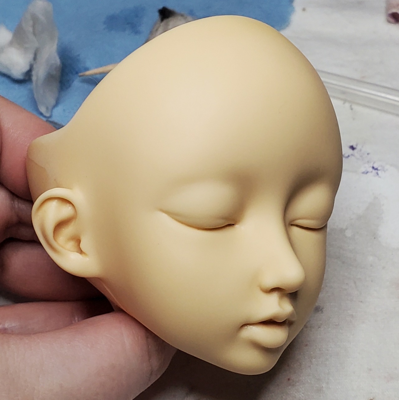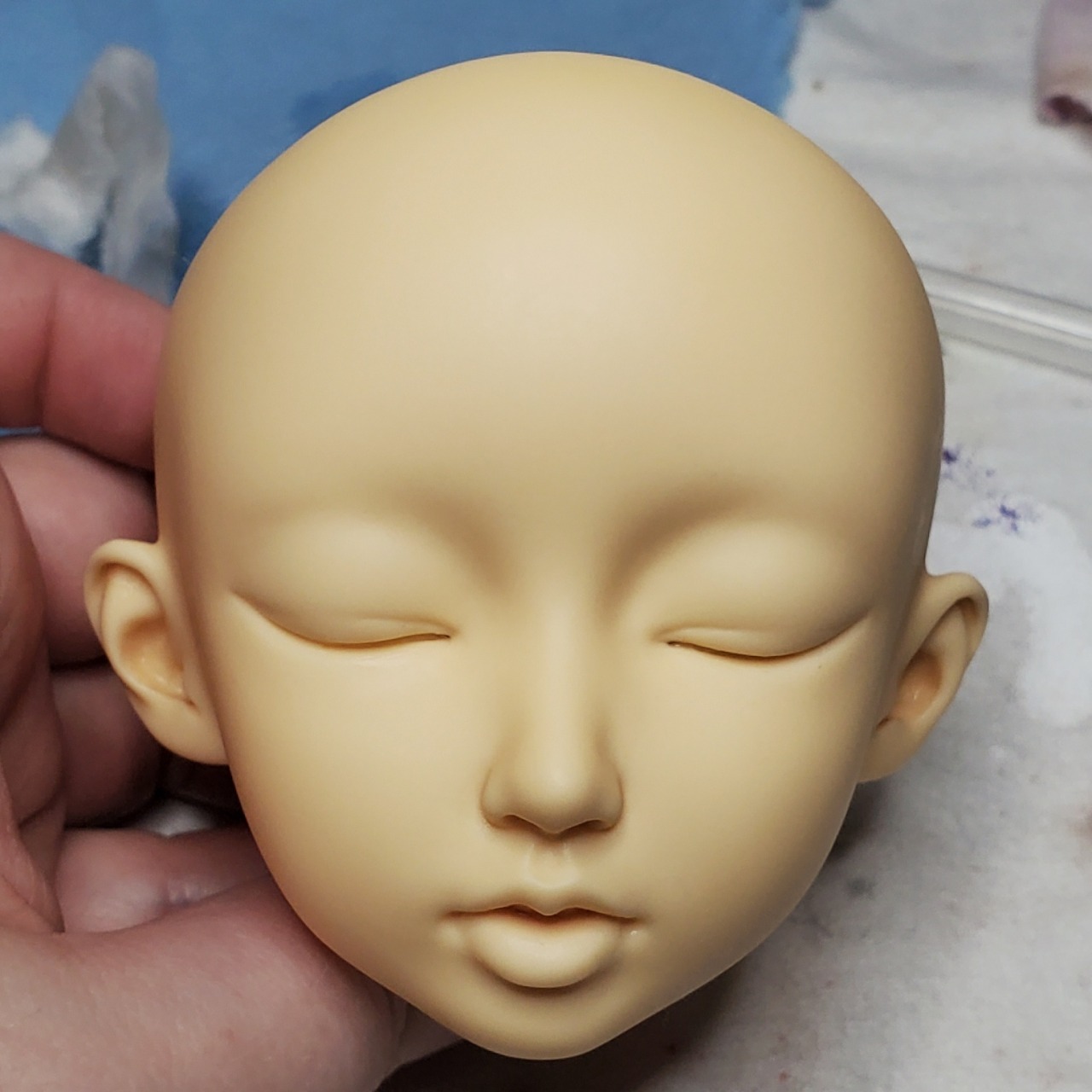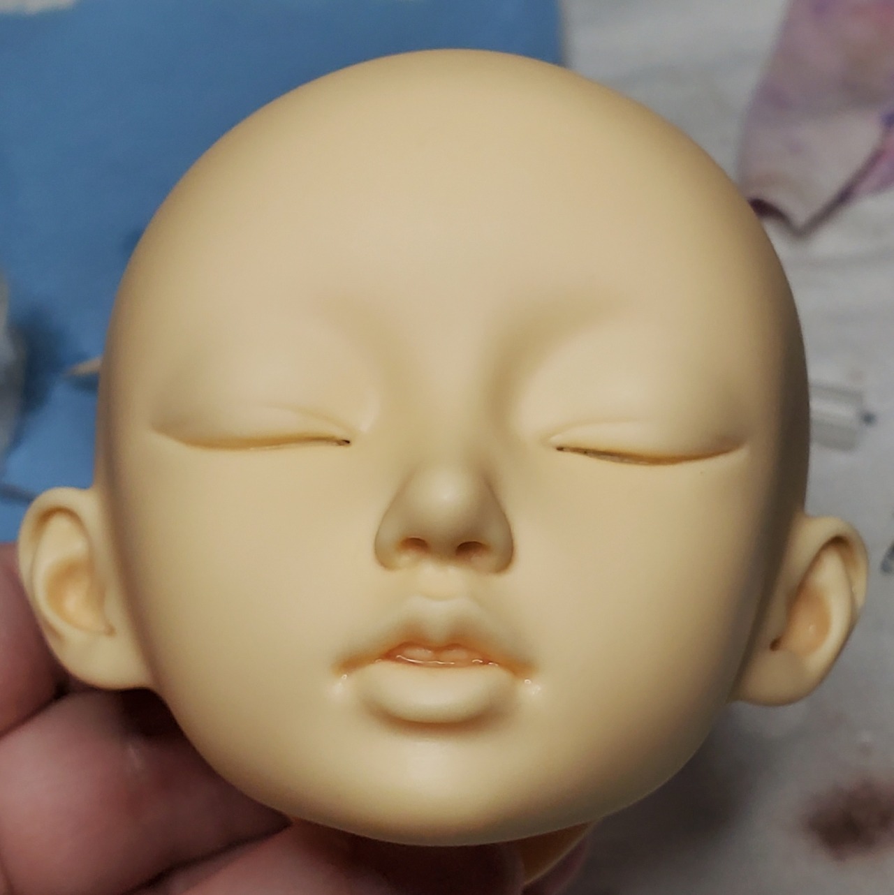 After a long time searching, a kind soul contacted me who was willing to sell their Littlefee Soony! This faceplate has some unfinished mods I needed to tidy up but I’m very excited about this little one. Her ears were cut down further than I would have done but I think the shape is really cute. The faceup is a WIP – I wanted her to have big dark brows. She’s stuck unfinished at the moment because I can’t get to the airbrush right now and I can’t seal the layer.