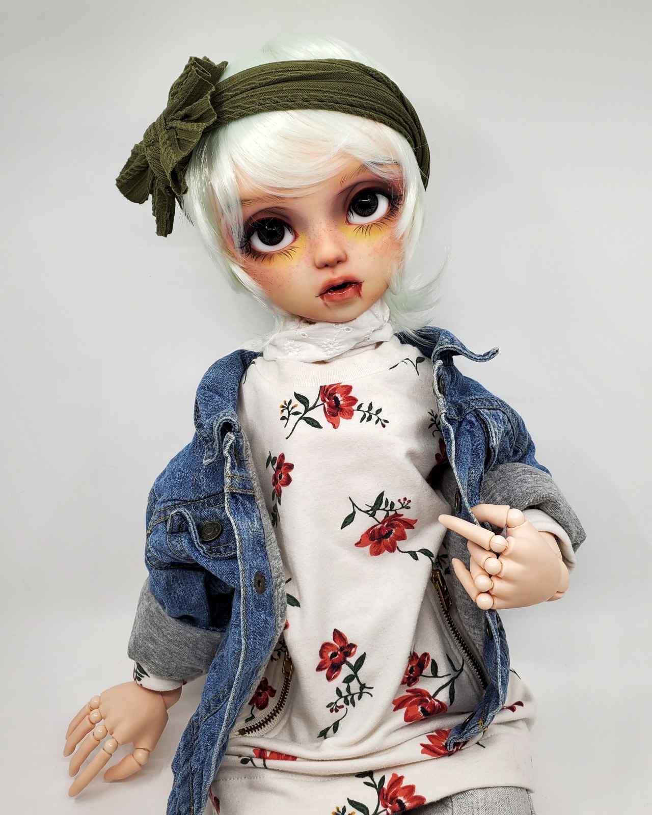 This one had been my project for a month or so! She is Large. Very Large. But also not as heavy as a resin SD. She poses well and is super fun. I did pretty extensive mods on her face trying to make her look more stylized and less childlike.