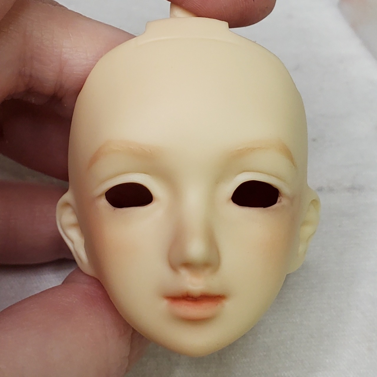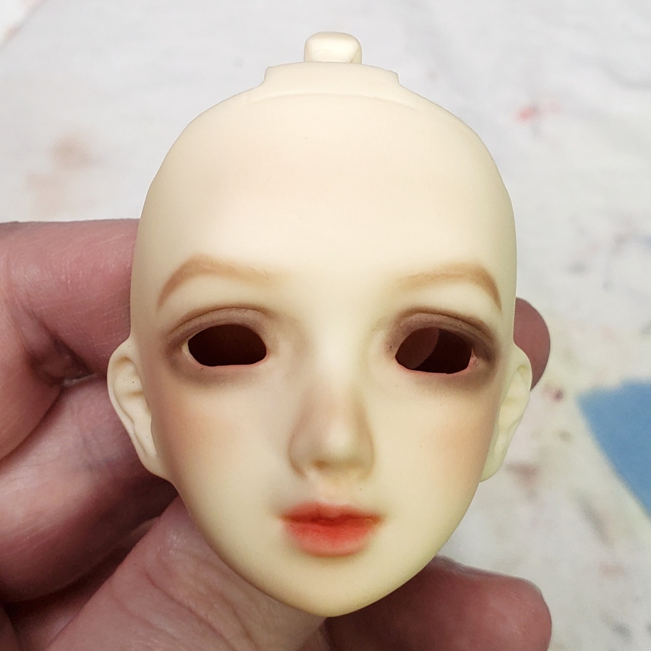 I tried to keep her faceup fairly simple but a bit glam. I didn’t sand her eyebrows or anything so those were a bit weird to paint.