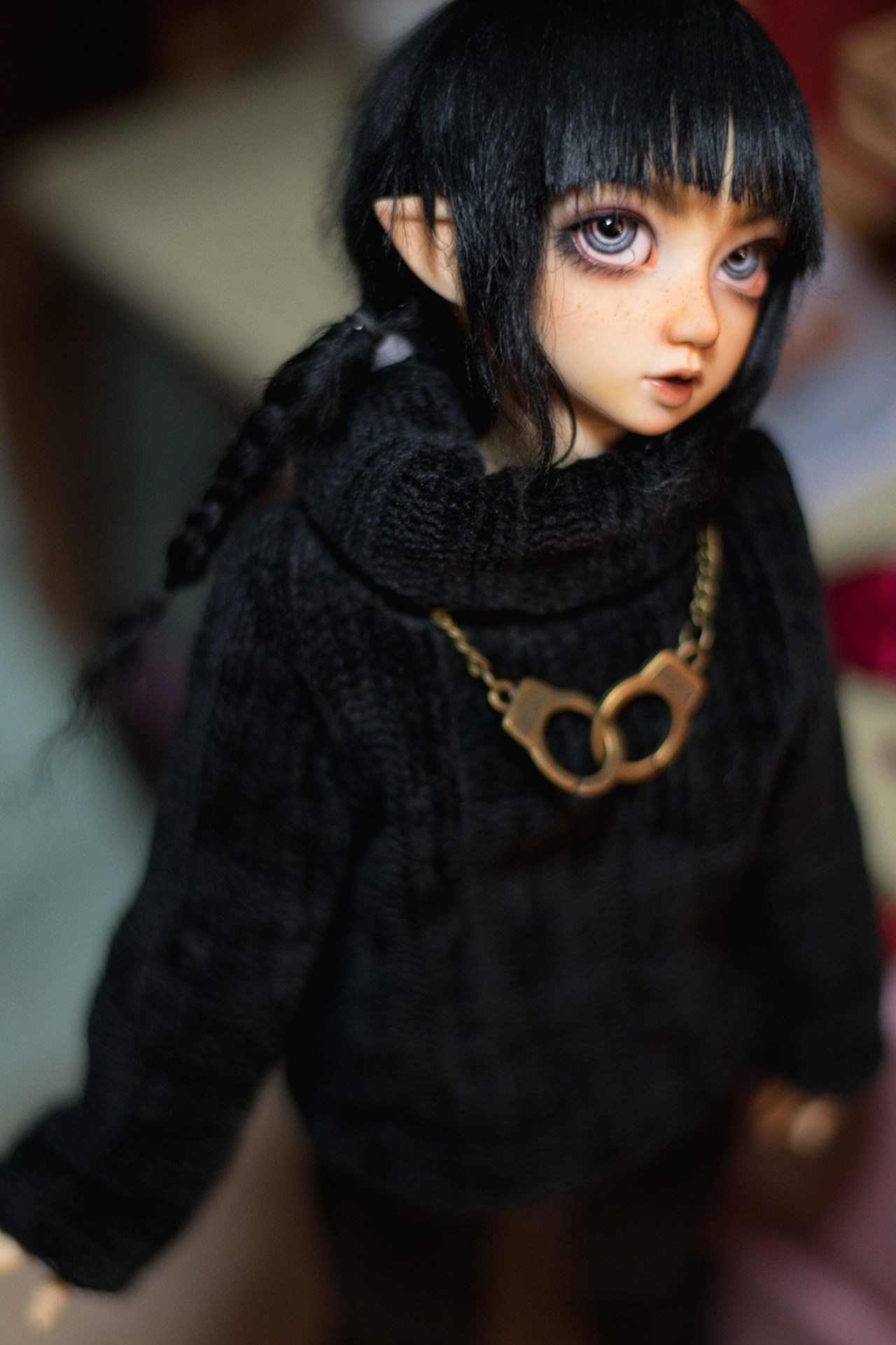 Oops I almost missed this girl! So, I had the old F60 body with Delf limbs (Soony’s leftovers hybrid) and wanted a head to pair up with my Soony. I thought over a lot of options and actually picked up an old Elfdoll Soah head originally, but I found that I didn’t like how she looked with big ol’ 9-inch-head, 20mm-eye-wearing Soony. In my heart I knew the sculpt I had in mind was a Volks 4 Sisters. I ended up picking up a whole Megu from Dollyteria because she cost pretty close to what I’ve seen the heads go for on DoA. She’s a lovely mold I always liked, but she’s also a particularly good scale/style match for Soony. I’m going for a sweet frail goth/scary angel handmaiden kinda vibe with the two of them but I’m still trying to pin them both down.